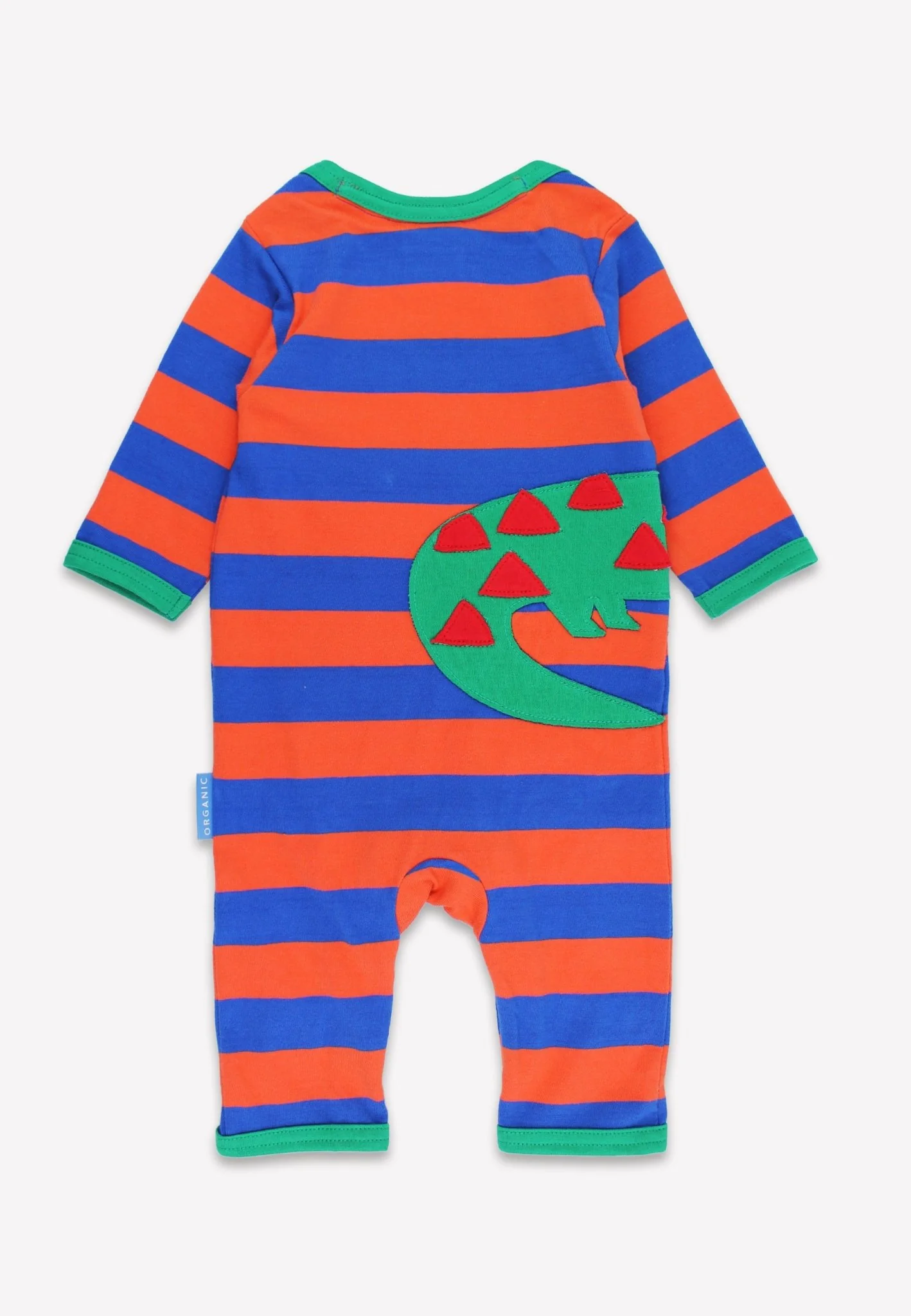 Dress your little one in playful comfort with this Organic Crocodile Applique Striped Sleepsuit. Featuring bright orange and blue stripes with green trim, it showcases a charming crocodile appliqué around the waist. Made from 100% GOTS-certified organic cotton, it’s super soft and gentle on delicate skin. The envelope neckline and leg poppers make dressing easy, while environmentally friendly AZO-free dyes keep it safe and vibrant. Machine washable at 30 degrees for simple care, this footless sleepsuit is perfect for cosy, carefree days and nights.